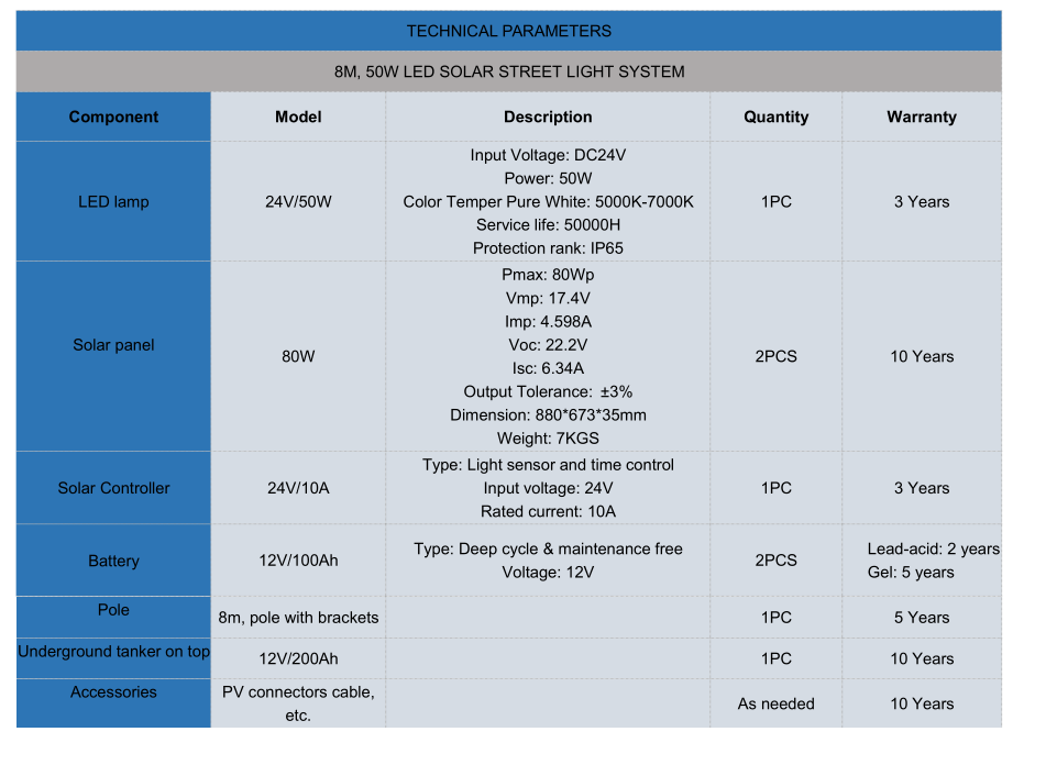 8m, 50W LED SLARE LED STREE SISTEM